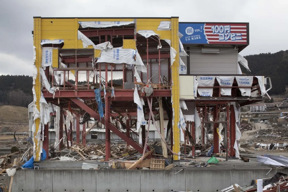 HIROHITO NOMOTO - image above - (*1971, lives and works in Hiroshima, Japan) : In his series Façade, Japanese artist Hirohito Nomoto deals with the disastrous impact of the tsunami that hit Japan in 2011. His photographs of the facades of destroyed buildings are accompanied by personal information about the place: “Akazaki, Ofunato-city, Iwate, Private residence. The ocean is behind the residence. Before the tsunami, a couple and their son lived here.“ The series tells about personal loss and grief. In contrast to manmade conflicts, natural disasters that destroy life of thousands out of the blue, cannot be predicted or prevented.