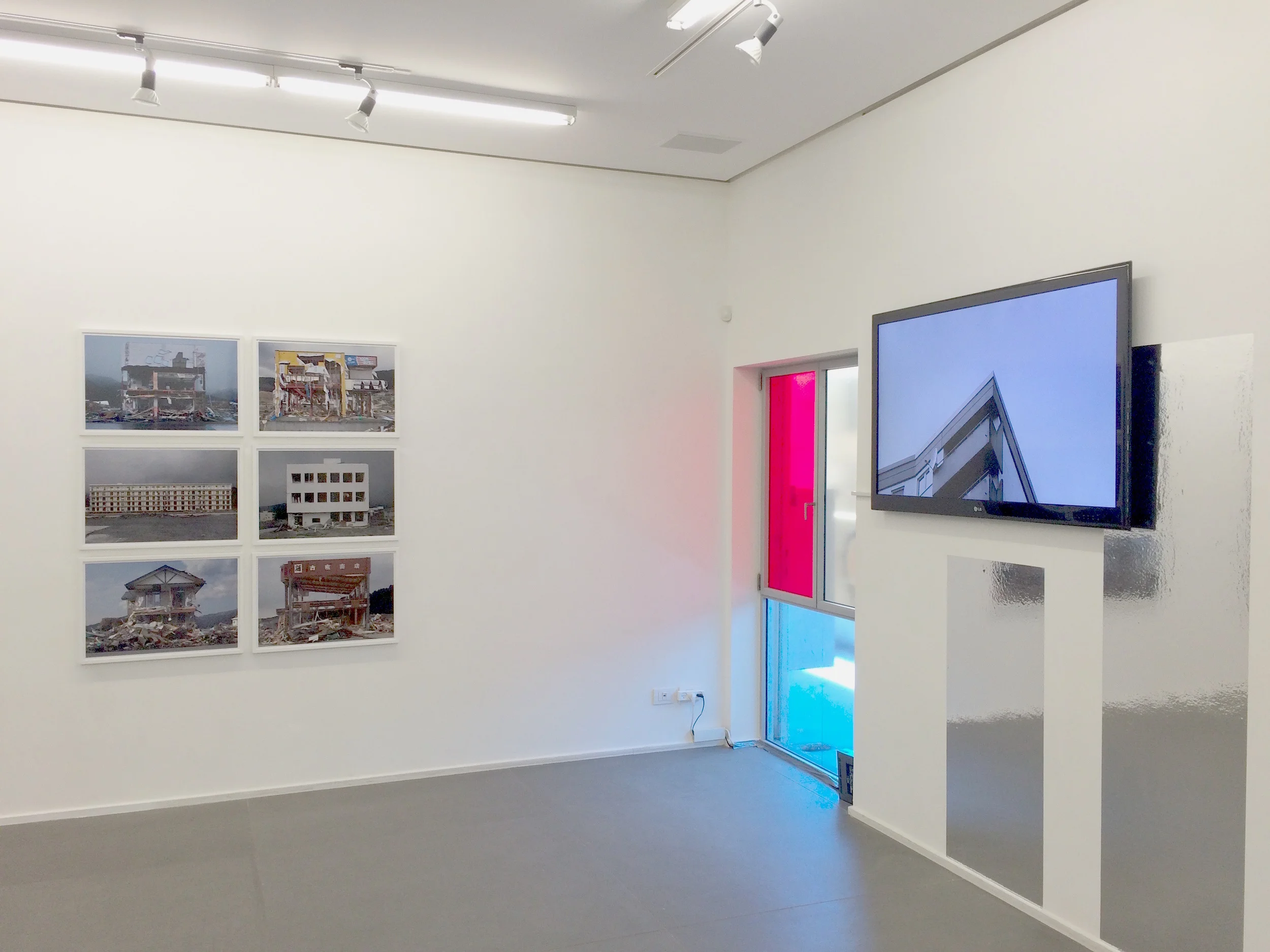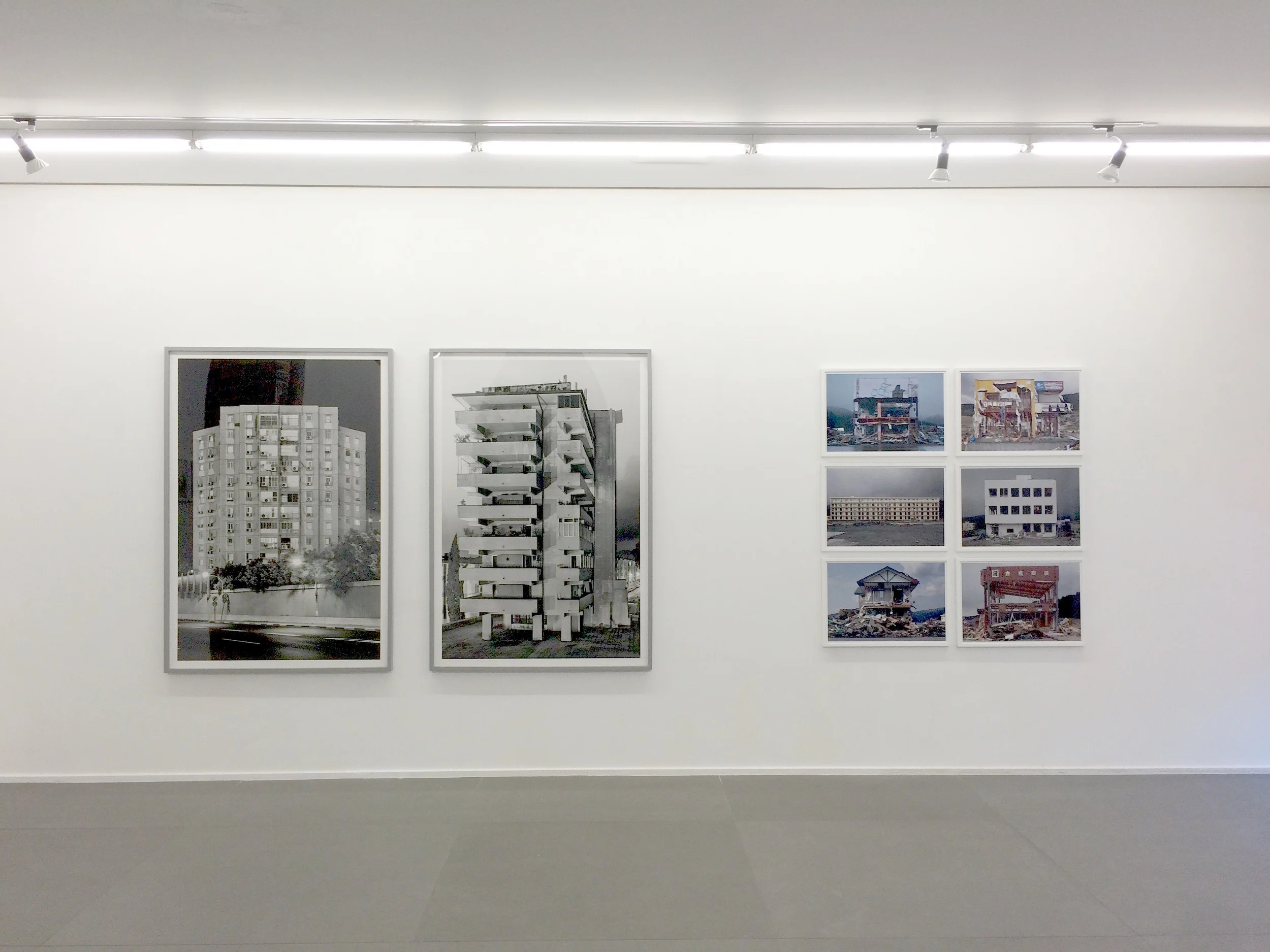 Eli Singalovski is interested in how residents intervene and alter the architecture of a building they live in. Pola Sieverding explores the change of perception of the large housing estates and its human living conditions. She raises questions of exclusion and enclosure in satellite cities. Both artists focus on the appearance and materiality of the brute material of concrete. They explore the correlation of domestic architecture as expression of the architect’s or urban planner’s purpose and its ability to meet human needs. Diana Artus explores narratives of cities and reinterprets urban phenomena and architectural complexes. The cities’ transformation resembles the individual recollection process of revising, replacing, losing or adding things. Both, memories and societal values change over time and our self-created surrounds visually reflect these alterations. Hirohito Nomoto photographs facades of destroyed buildings after the tsunami hit Japan in 2011. His photographs reveal personal loss and grief. In contrast to man-made conflicts, natural disasters that destroy life out of the blue cannot be predicted or prevented.